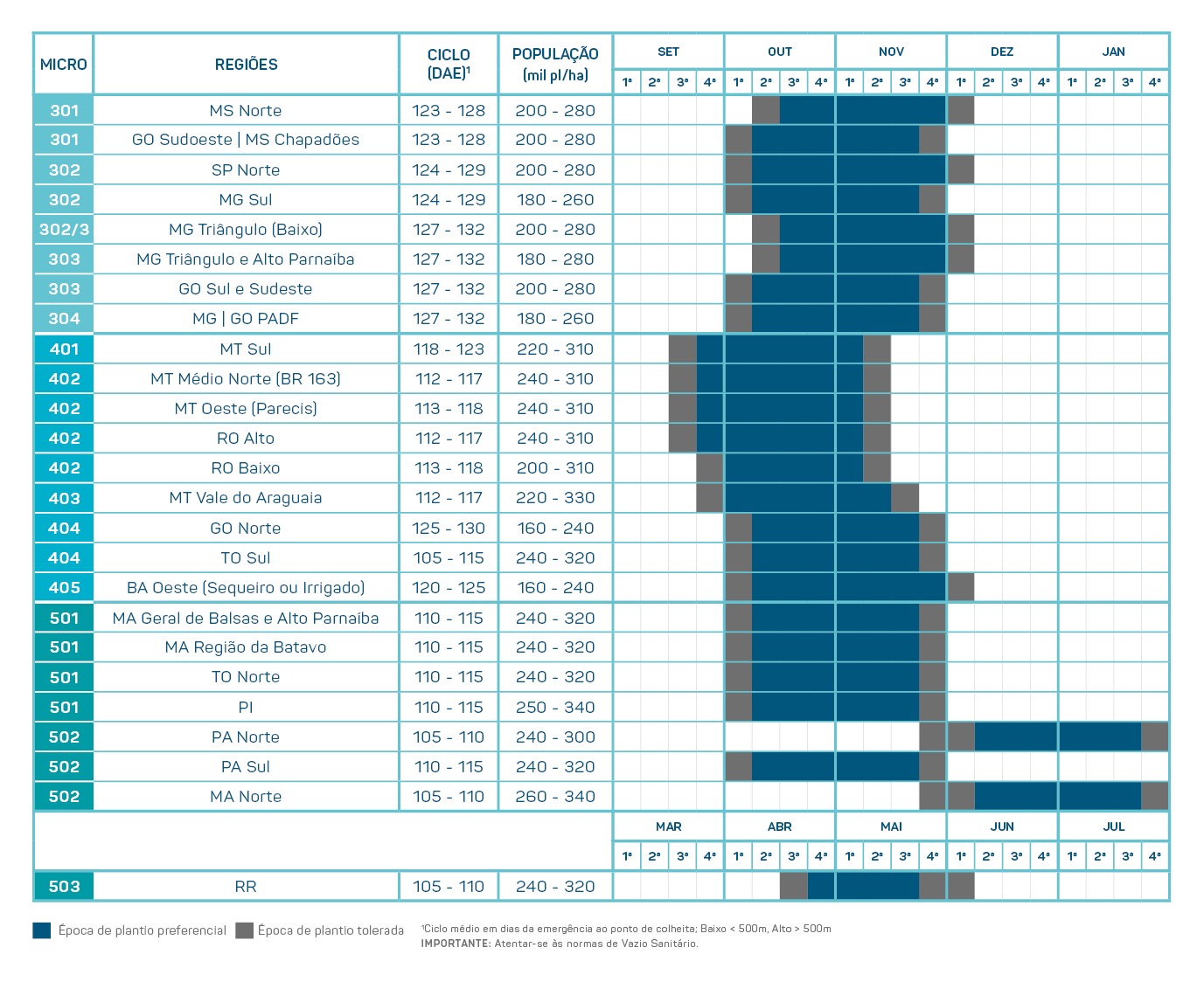 Alto potencial produtivo , resistência ao nematoide de cisto , tolerância a chuva na colheita, ampla adaptabilidade de regiões e excelente opção para abertura de plantio.