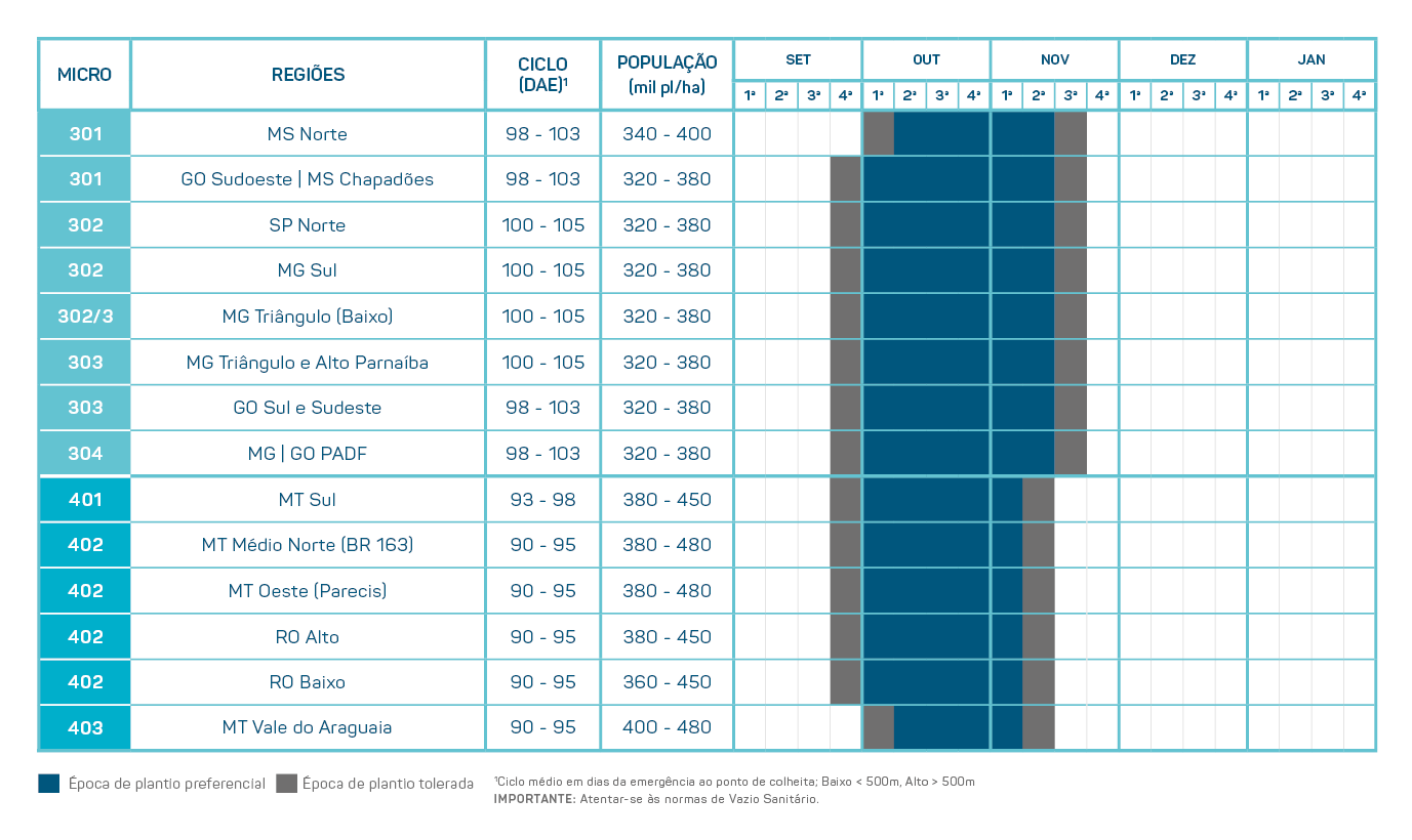 Super precocidade, excelente ferramenta para manejo de nematoides, ampla resistência a cisto e excelente controle de plantas daninhas e tigueras.